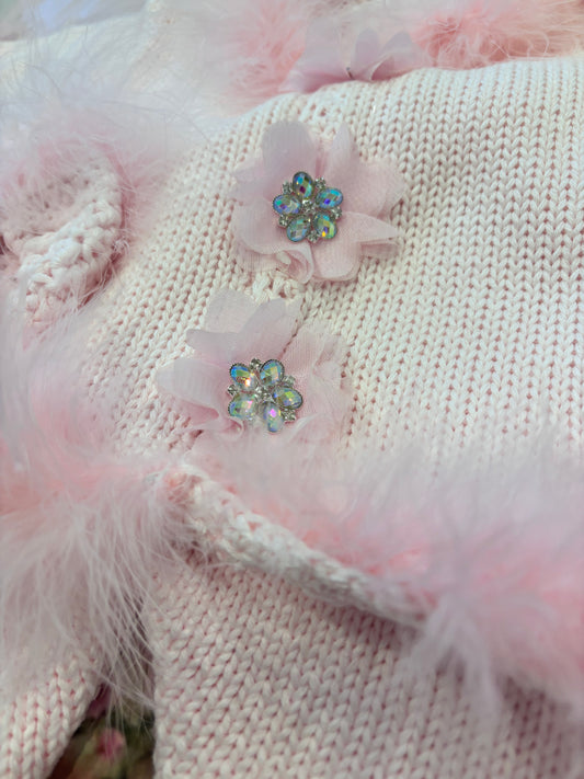 Pink Marabou Set with Crystal Flowers
