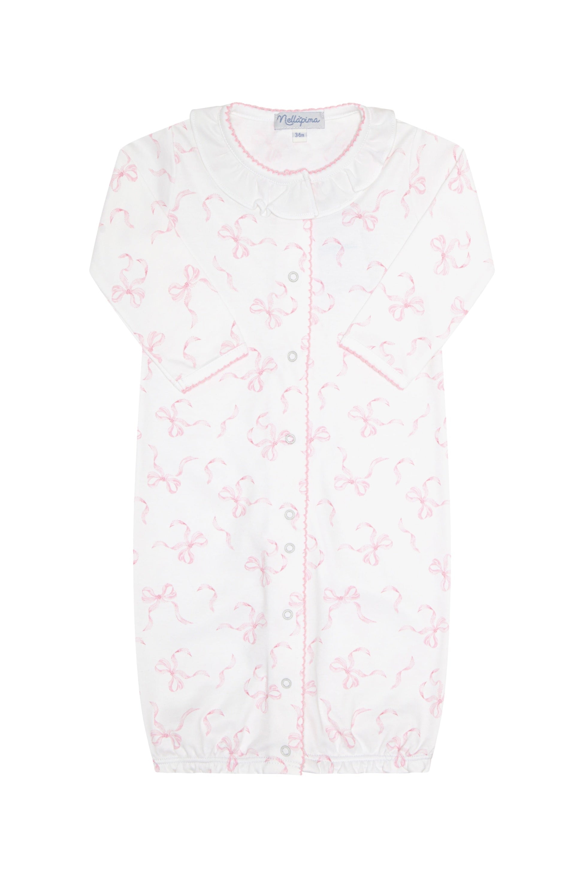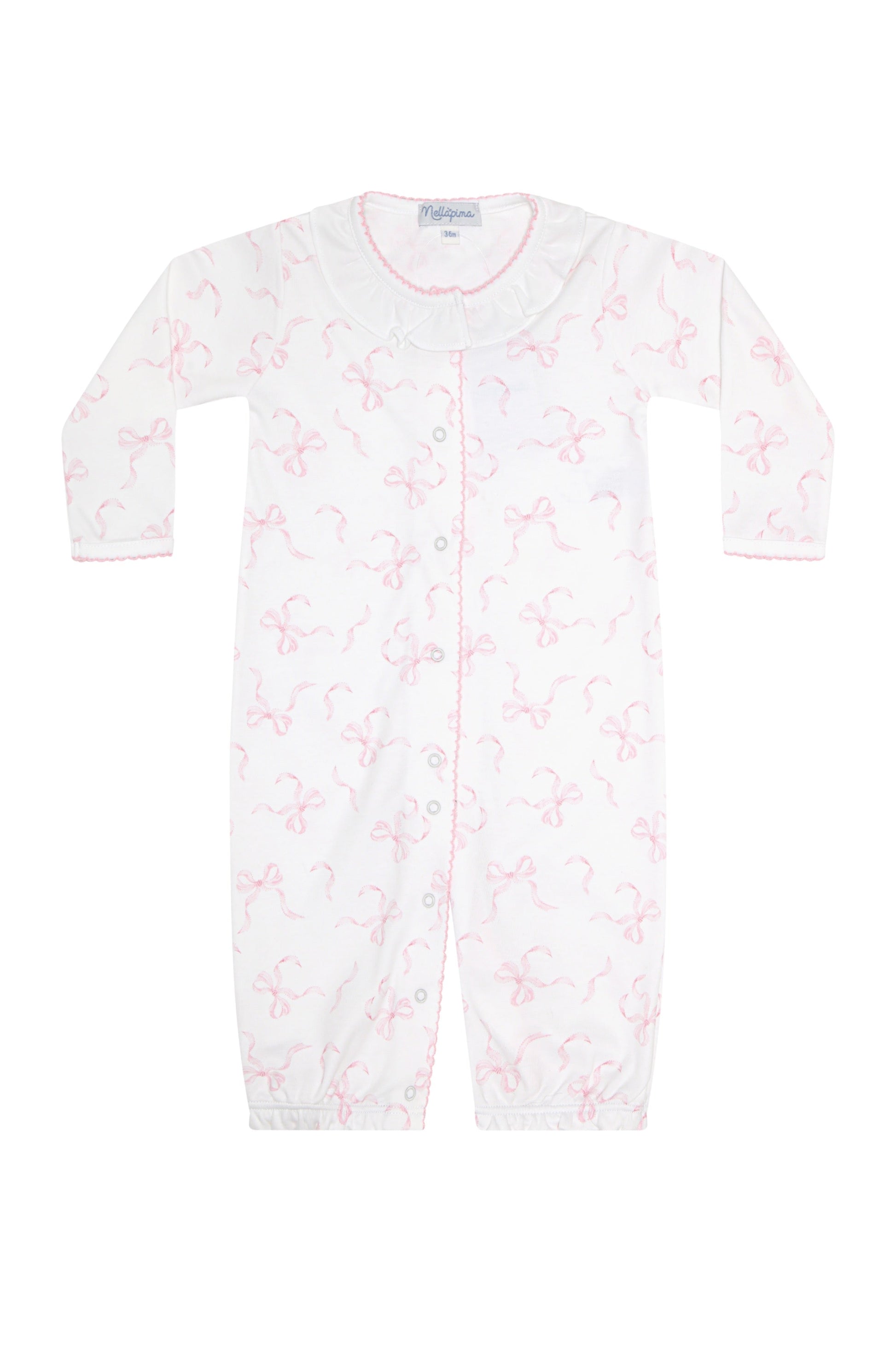 One of our most versatile pieces, this converter gown transforms from a gown to a playsuit in seconds. Perfect for naps, diaper changes, or daytime lounging, it's made of our signature Pima cotton and printed with soft pink bows. A must-have for new parents who want comfort without compromising on style.