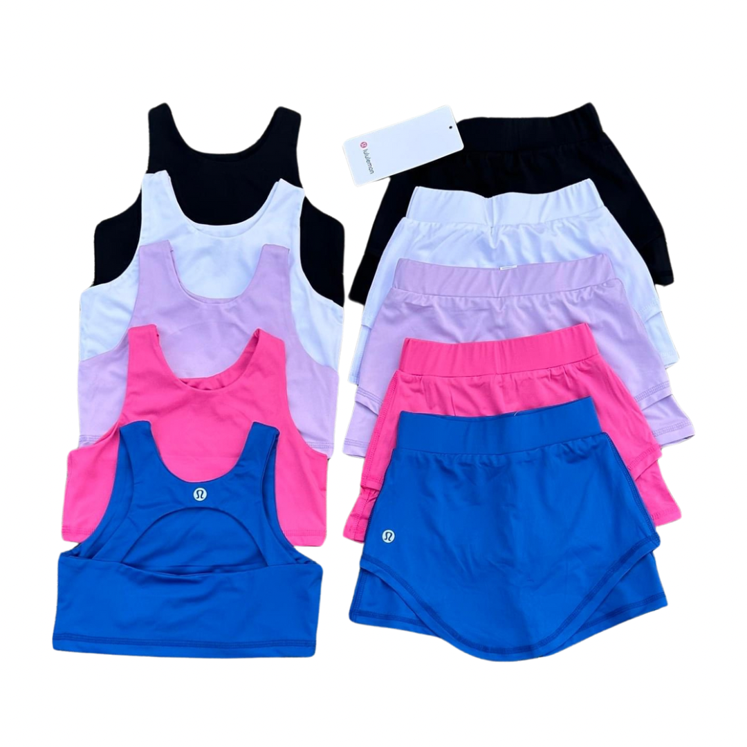 Get ready for a refreshing summer with our Lulu🍋 Skirt Set! Perfect for girls who love Lululemon, this set will keep you cool and stylish all season long. Say goodbye to boring outfits and hello to playful fashion with our quirky and fun design.Â
