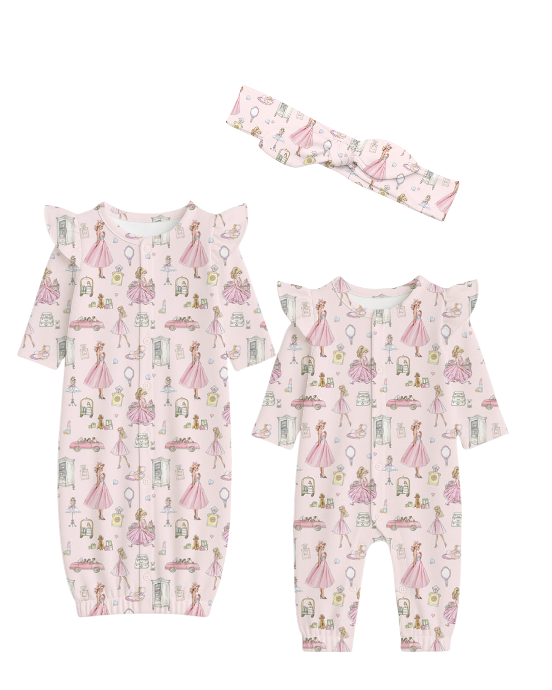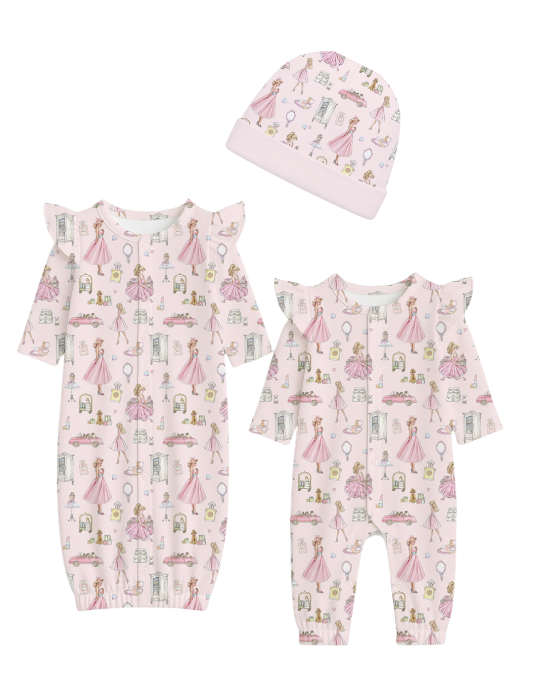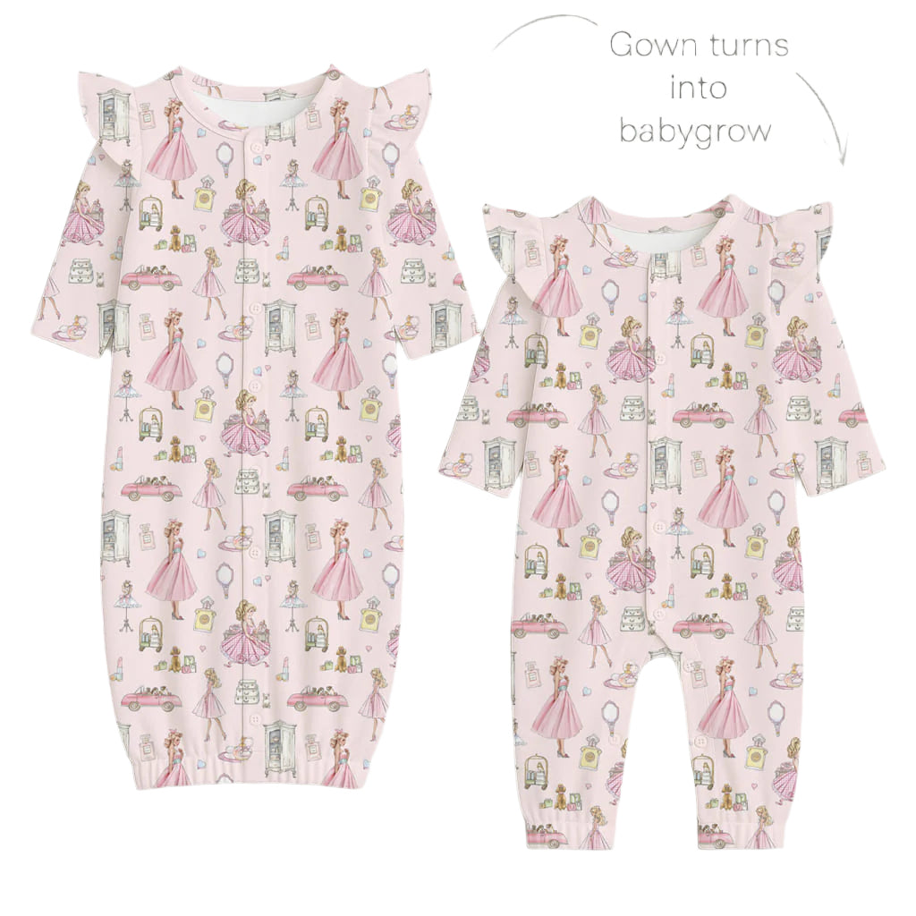 My Little Pie's Mon Cherie Print convertor gown. Made from 100% Pima Cotton.