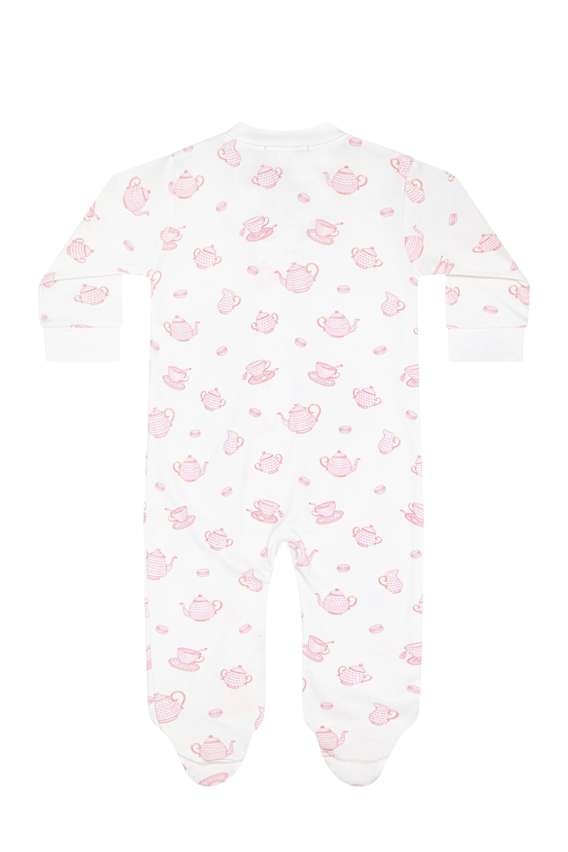 Made from 100% Peruvian Pima cotton, this ultra-soft footie blends timeless style with everyday practicality. The 2-way zipper allows for quick and effortless diaper changes from top or bottom, without fully undressing your baby — especially useful during nighttime changes. Enclosed feet keep your little one warm and secure, while the delicate Tea Time print of teacups and macarons adds a touch of charm. Finished with refined stitching and picot trim, it’s a cozy essential from playtime to bedtime.